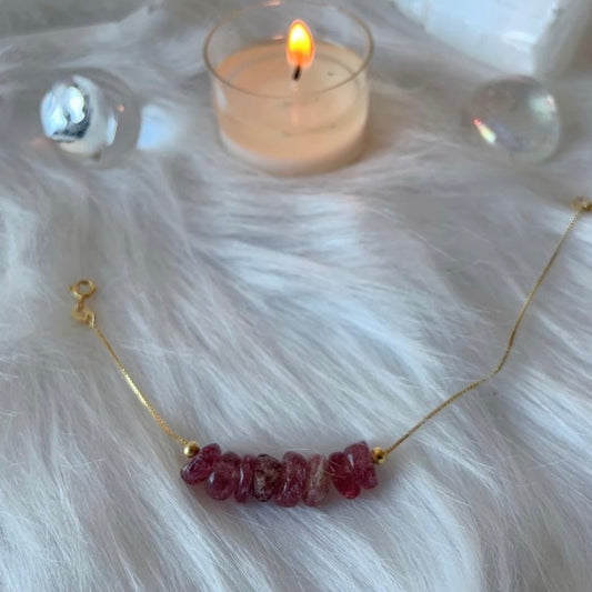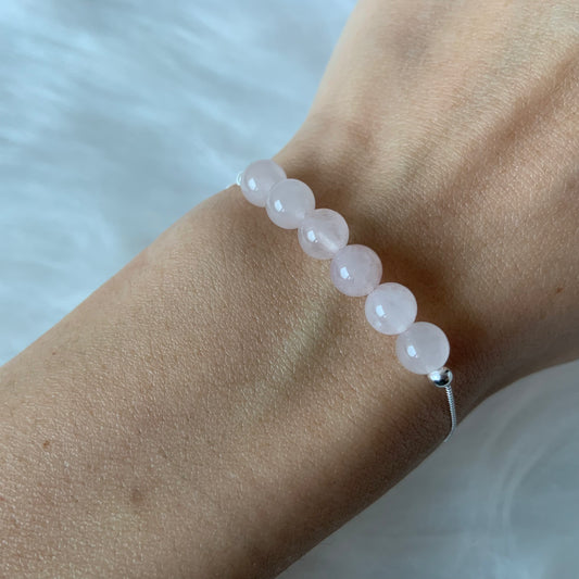 粉紅斑紋碧玉 x 粉晶x 火山石 925純銀水晶手鏈