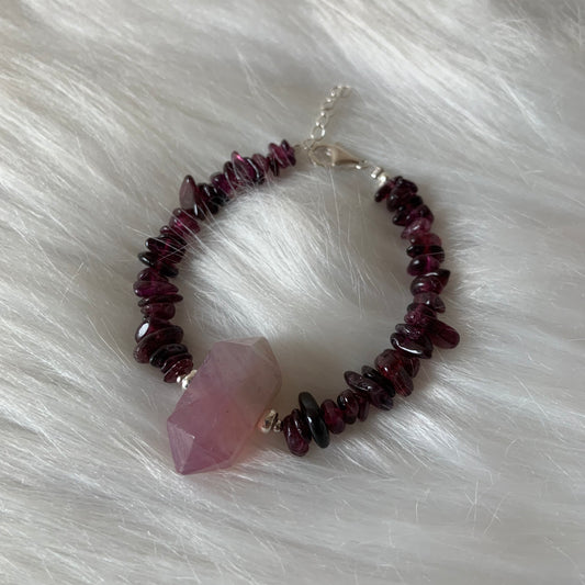 紫粉晶水晶柱 x 石榴石魔法水晶手鏈