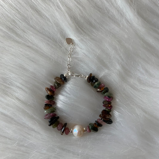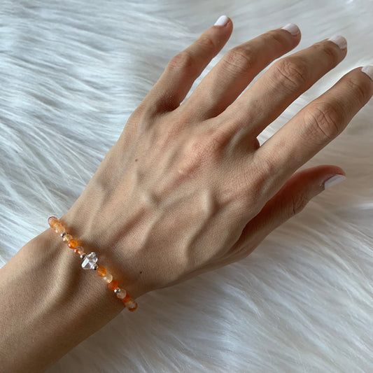粉晶x 摩洛哥橙紅瑪瑙x 茶晶925純銀魔法水晶手鏈