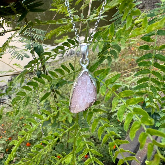 馬達加斯加紫粉水晶柱925純銀魔法水晶頸鏈