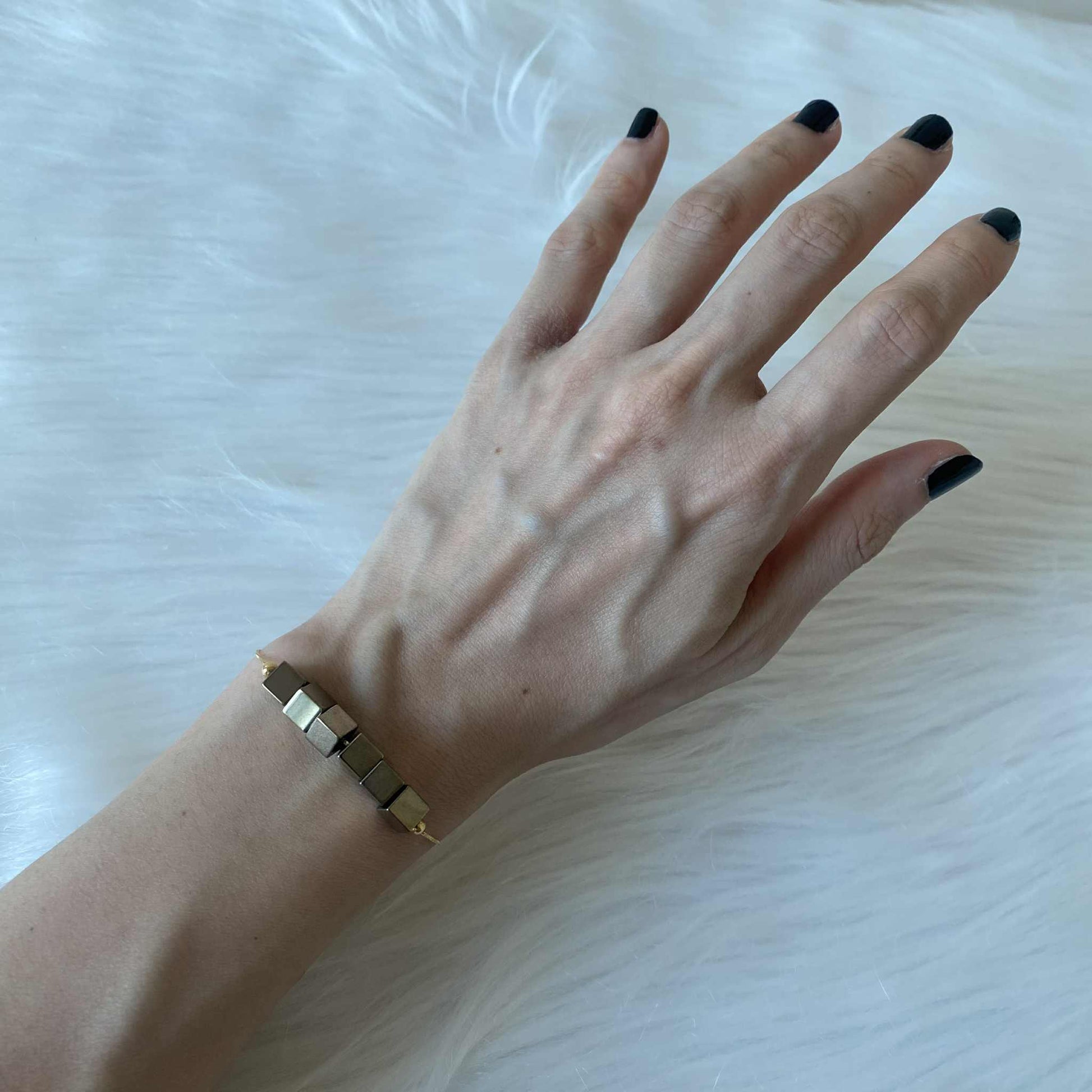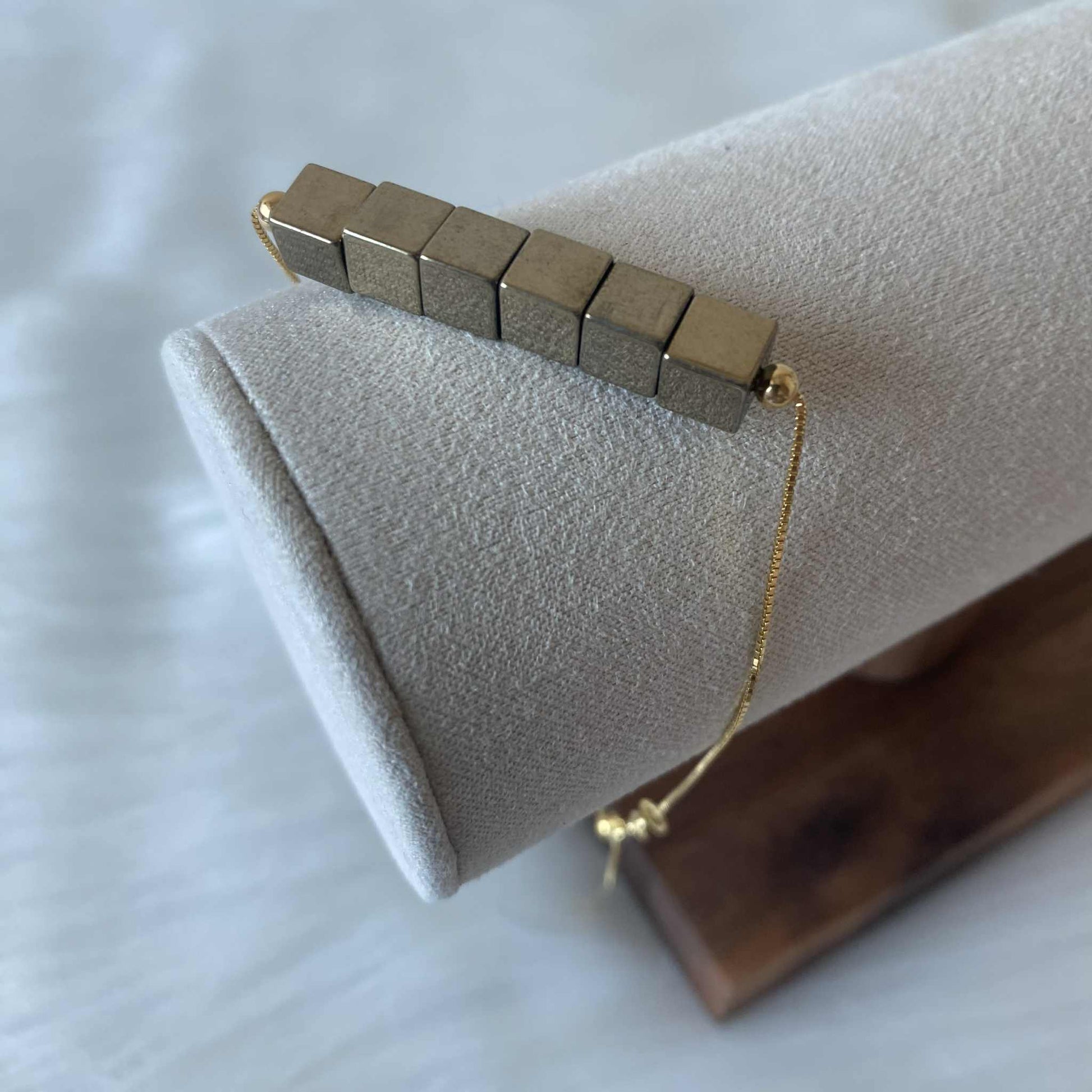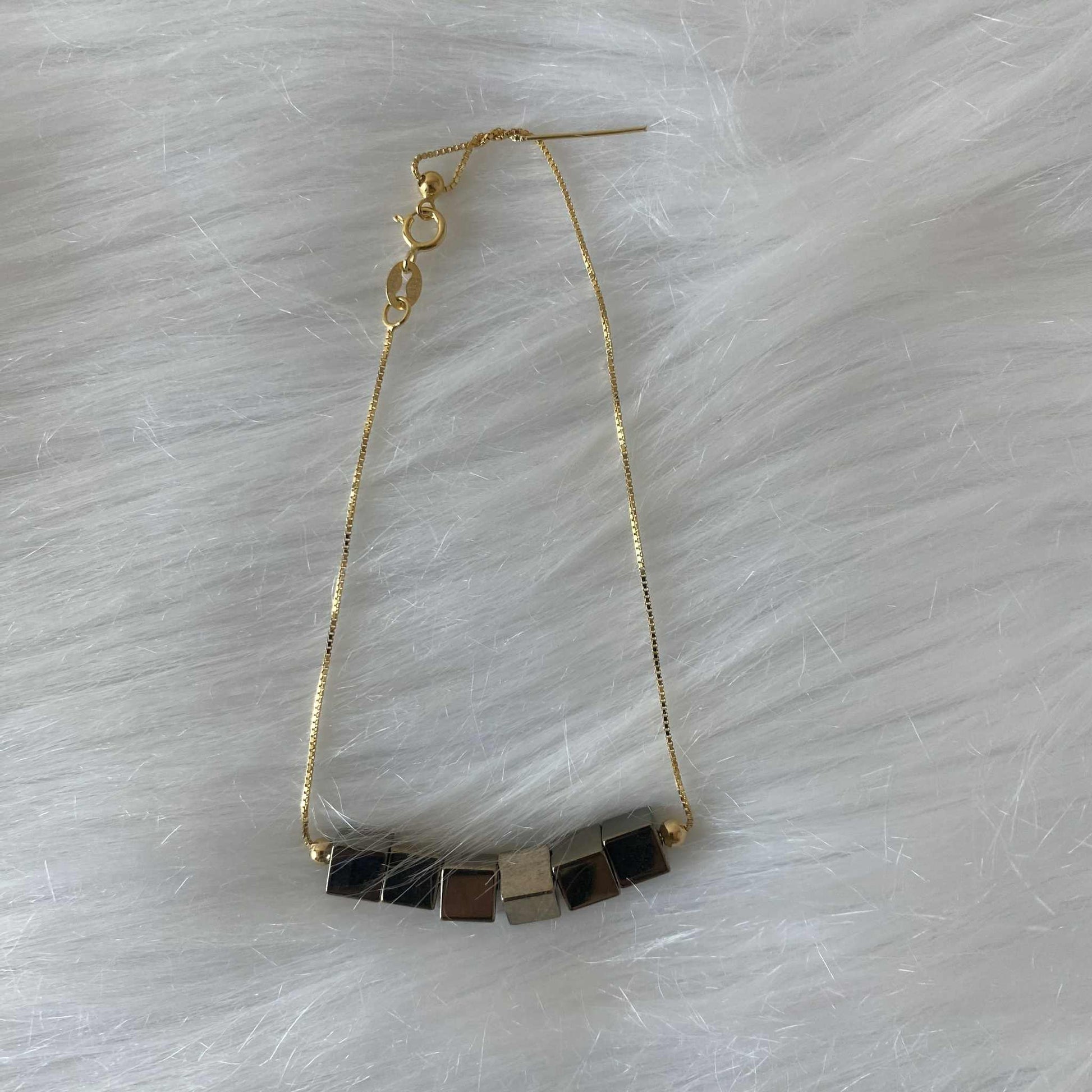 黃鐵礦新版大大粒方型(6mm)925純銀魔法水晶手鏈