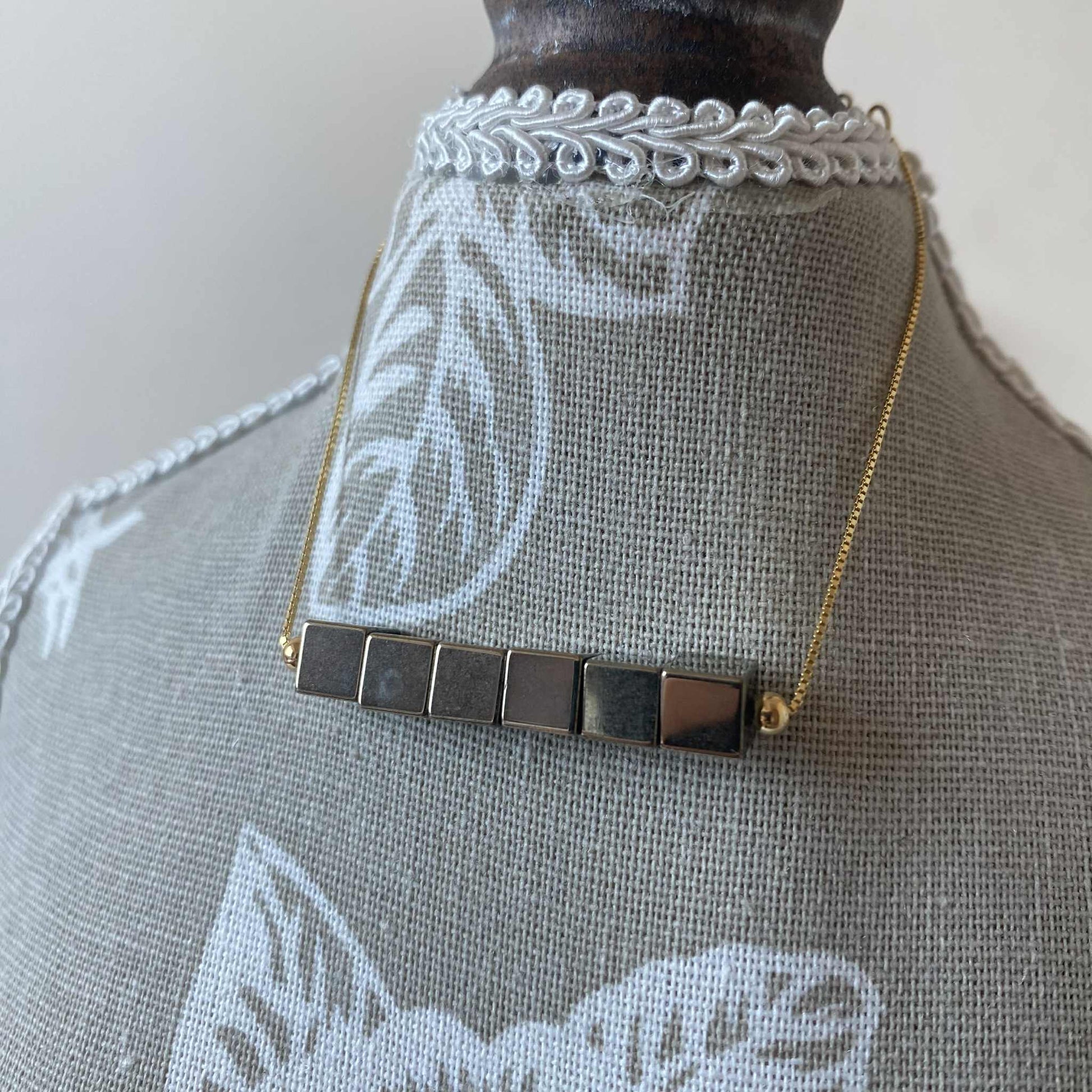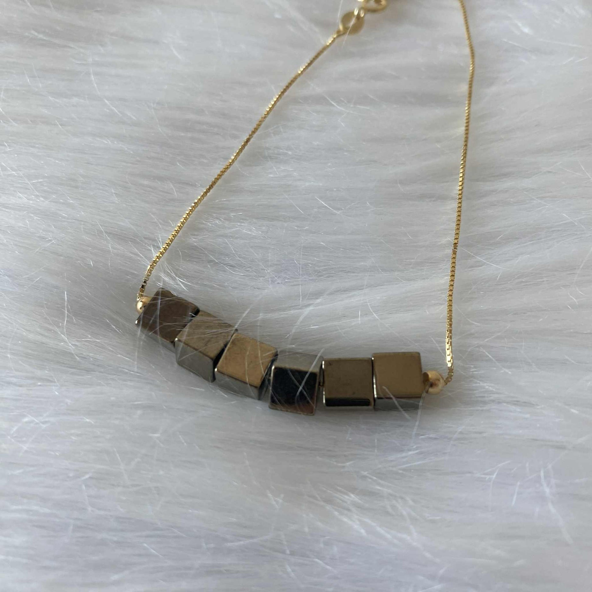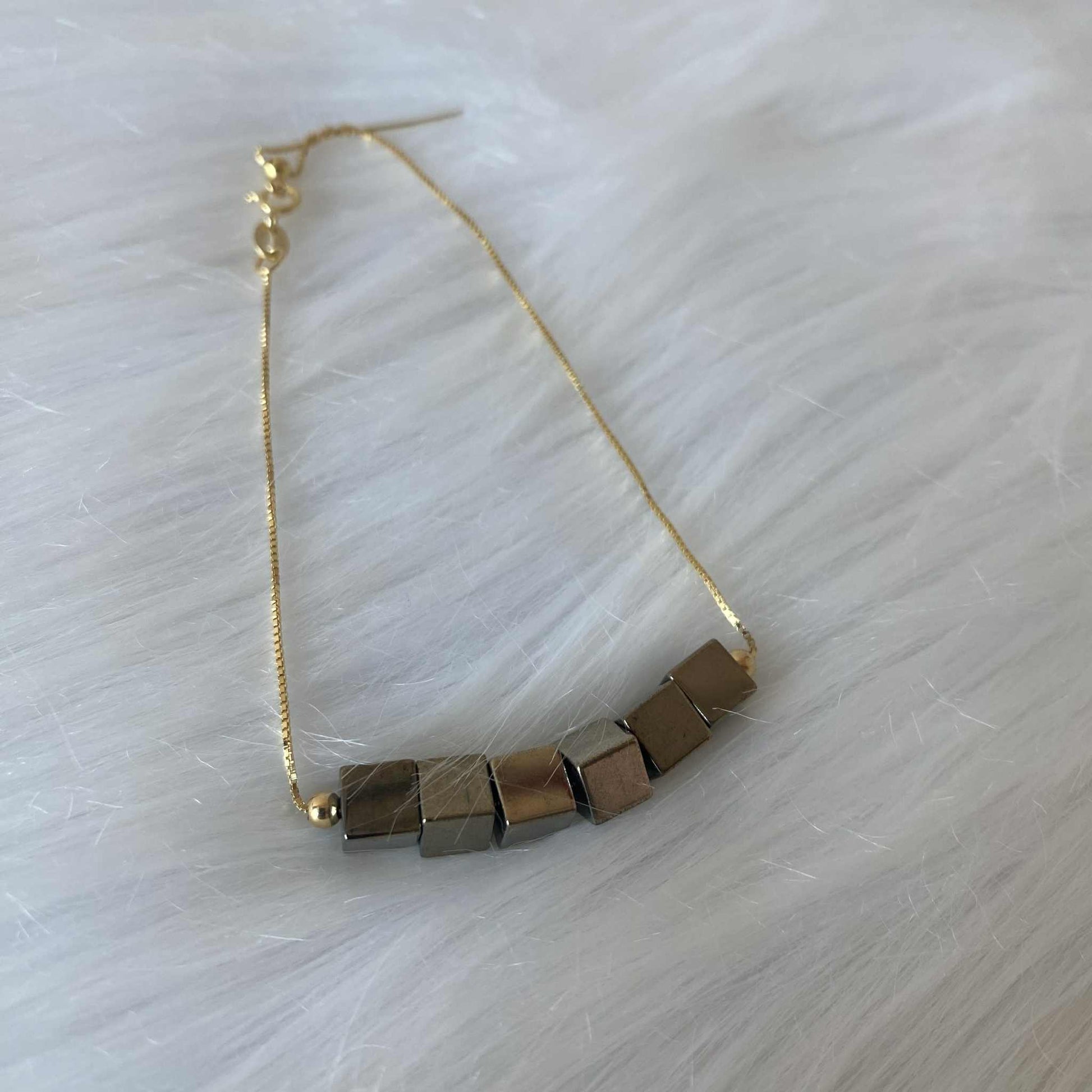 黃鐵礦新版大大粒方型(6mm)925純銀魔法水晶手鏈