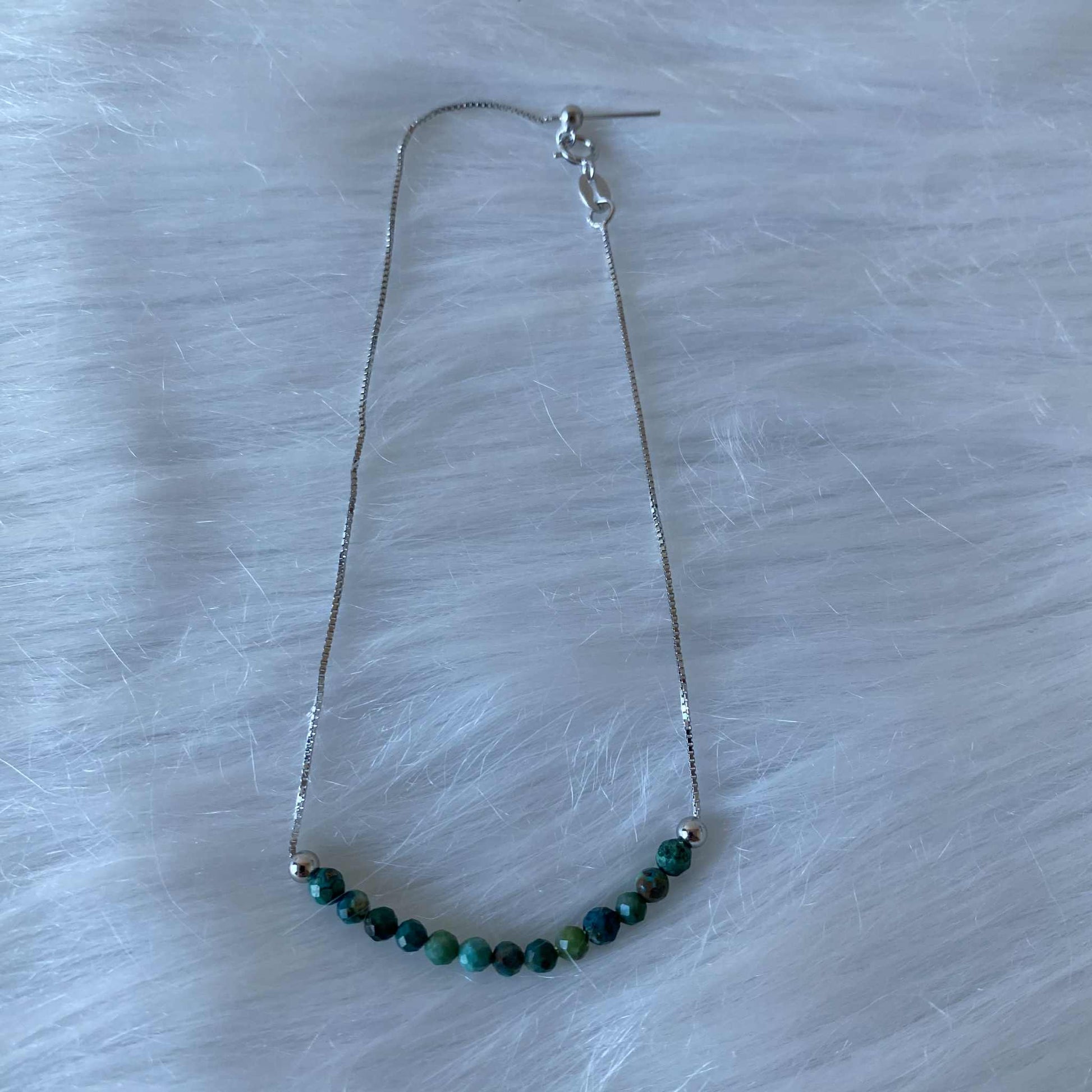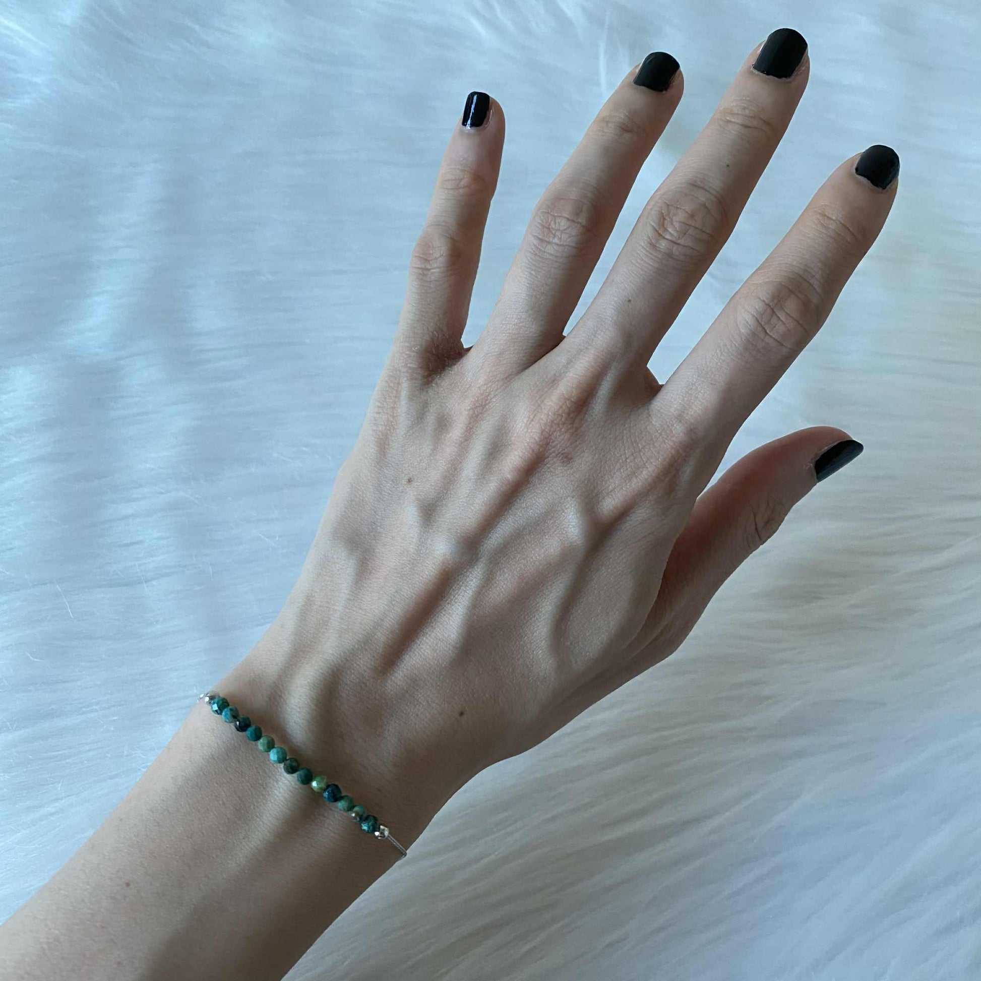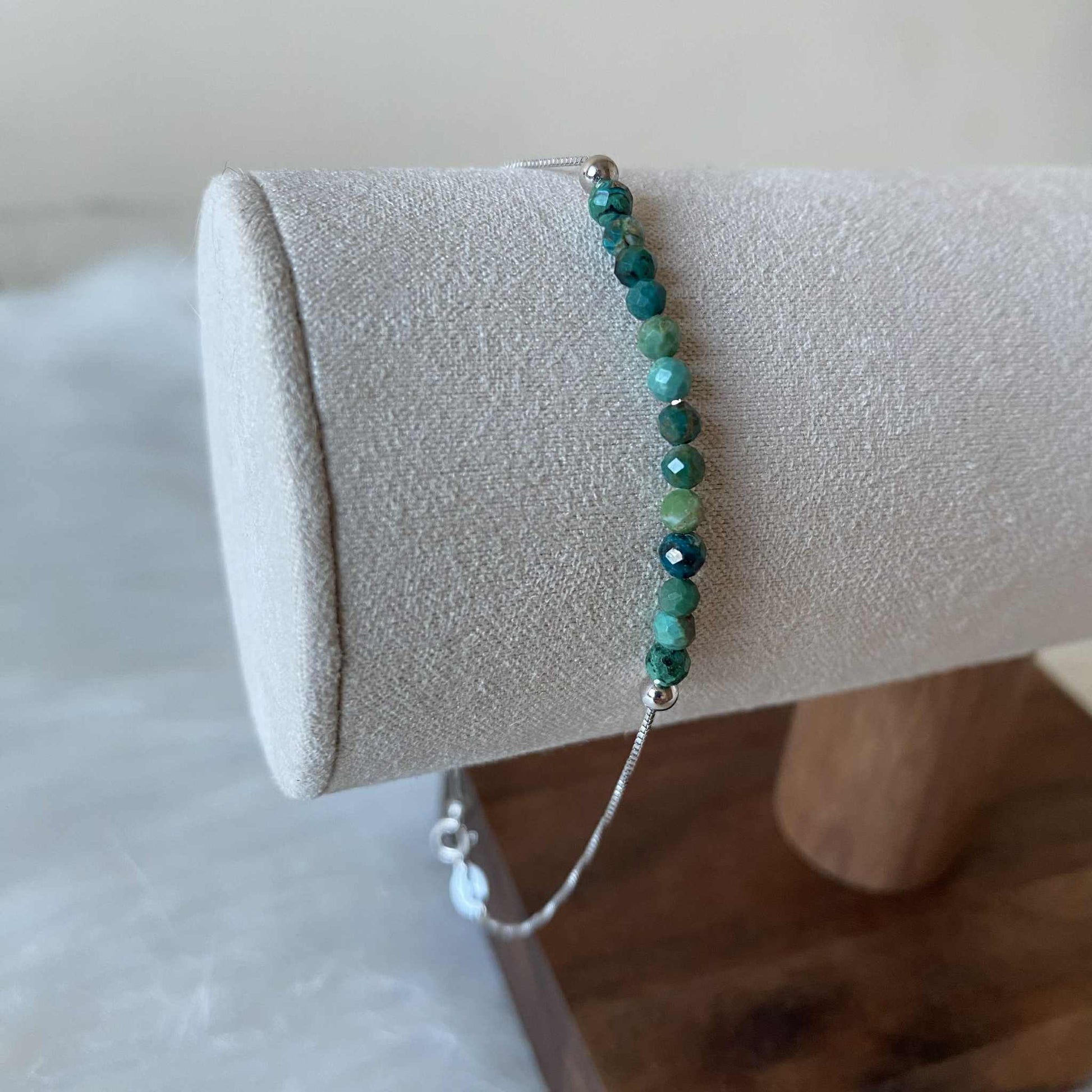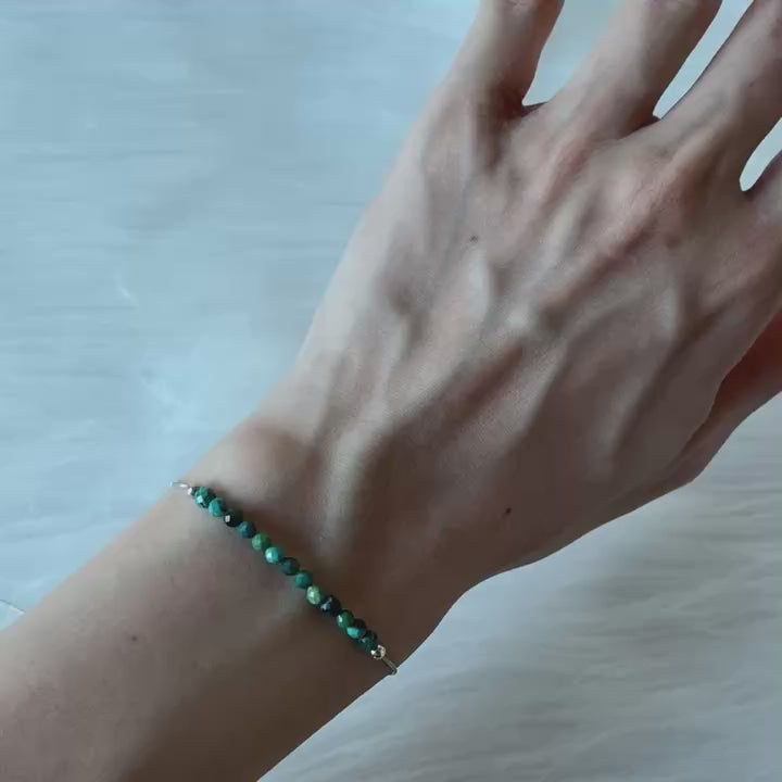 Chrysocolla 精緻孔雀石925純銀手鏈